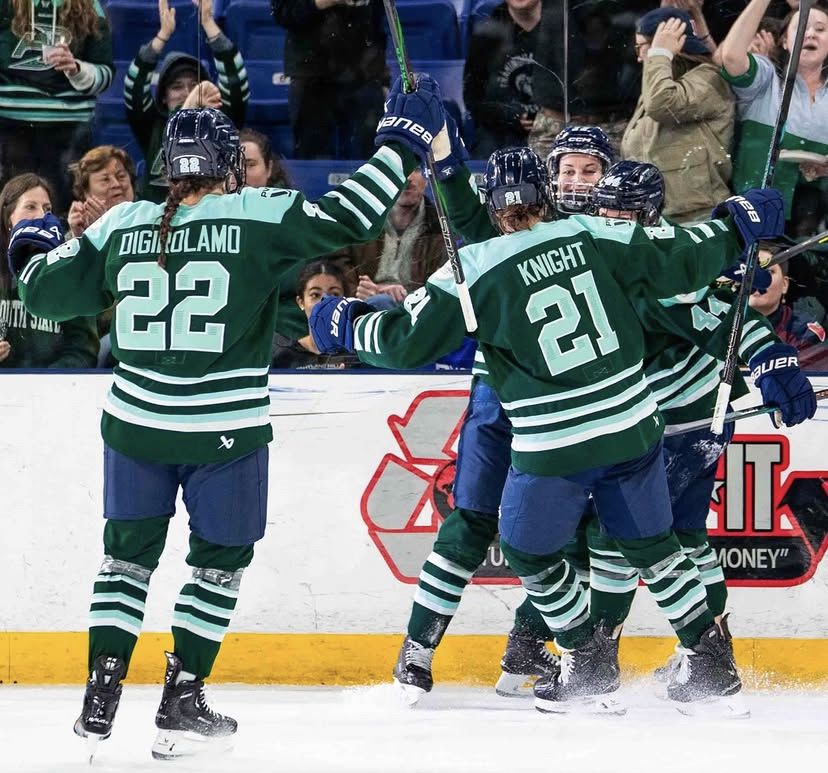 Fans at the Prudential Center barely had time to settle back into their seats for the third period before they’d witness the highlight of the PWHL season. Abby Roque recovered a loose puck and took it around the net, flicking it up onto her blade and wrapping it high off of Philips’ mask and into the top corner. The Sault Ste. Marie, Michigan product pulled off the first Michigan goal in league history less than a week after playing a pro game in her home state, and—almost secondarily—pulled her team back to within one goal in the third period.